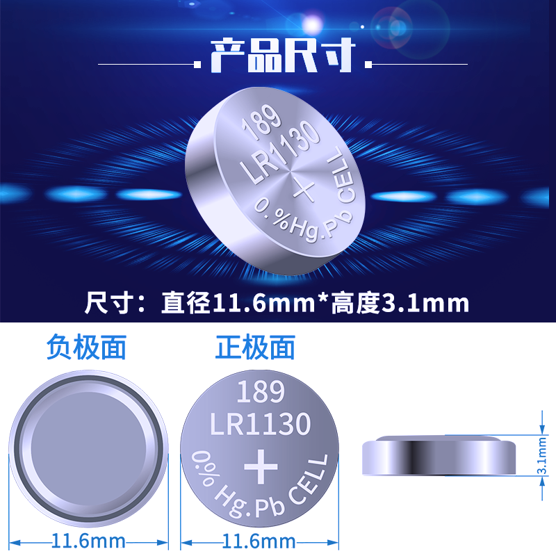 LR54扣式 原装 1131 LR1130H 小电子表计算器通用1.5V风火轮气嘴灯手表适用圆形电池189 LR1130纽扣电池AG10