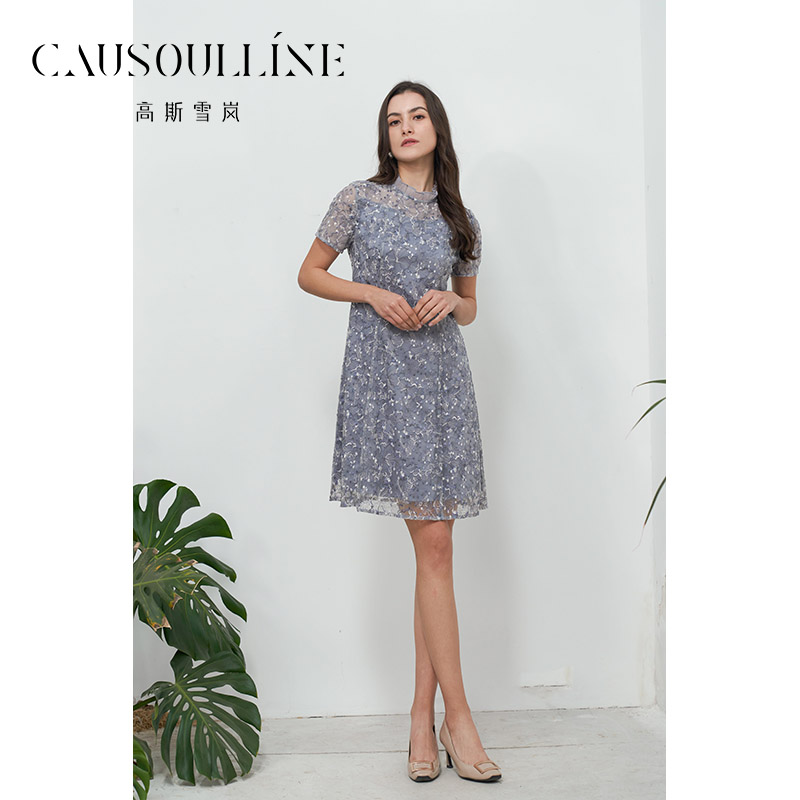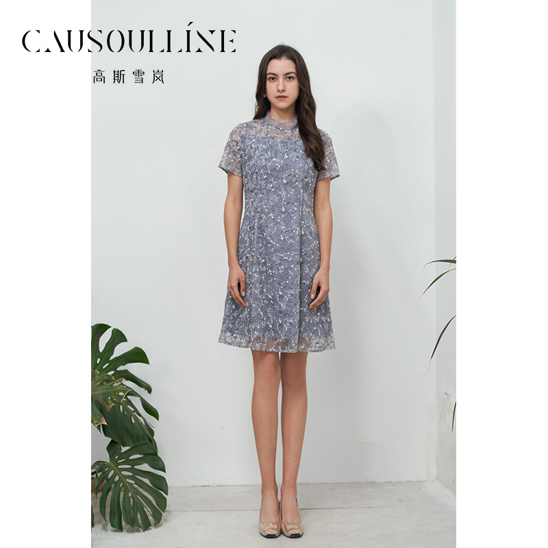a裙 中国风刺绣蕾丝连衣裙花边优雅高端中式 高斯雪岚2024夏装 新款