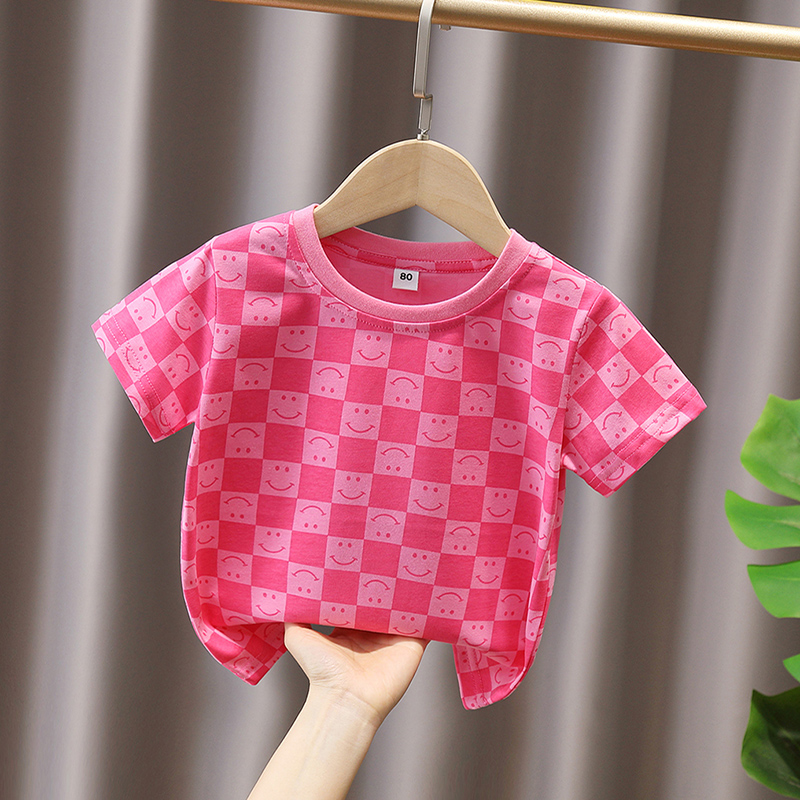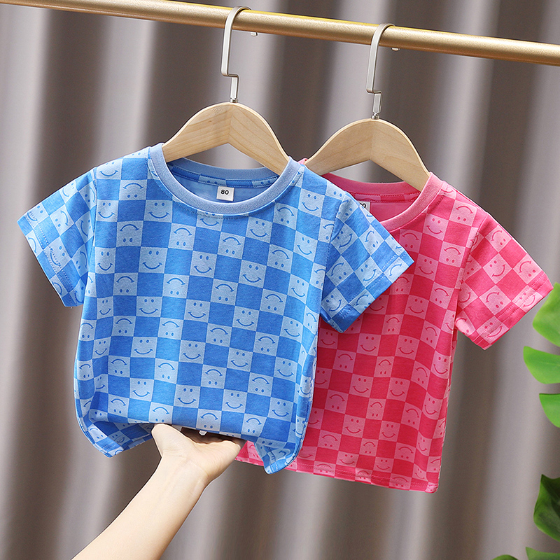 小童体恤衫 儿童趣味格子笑脸满印花短袖 T恤男女童2025夏3宝宝半袖