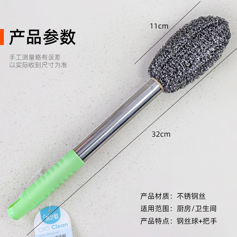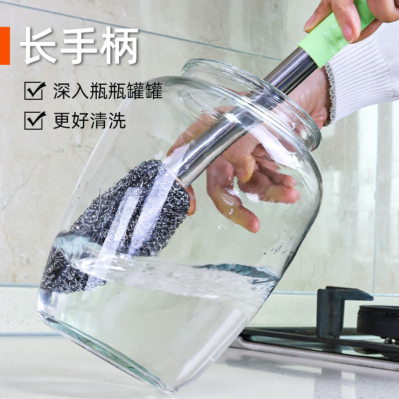 钢丝球刷长柄锅刷不生锈清洁厨房灶台清洁不伤不生锈不掉渣刷子