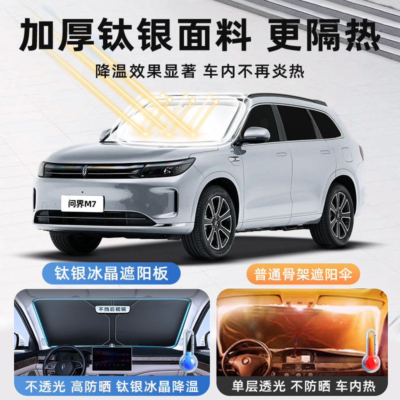 适用于华为问界M7汽车防晒隔热遮阳板前挡风玻璃罩伞帘挡遮光用品