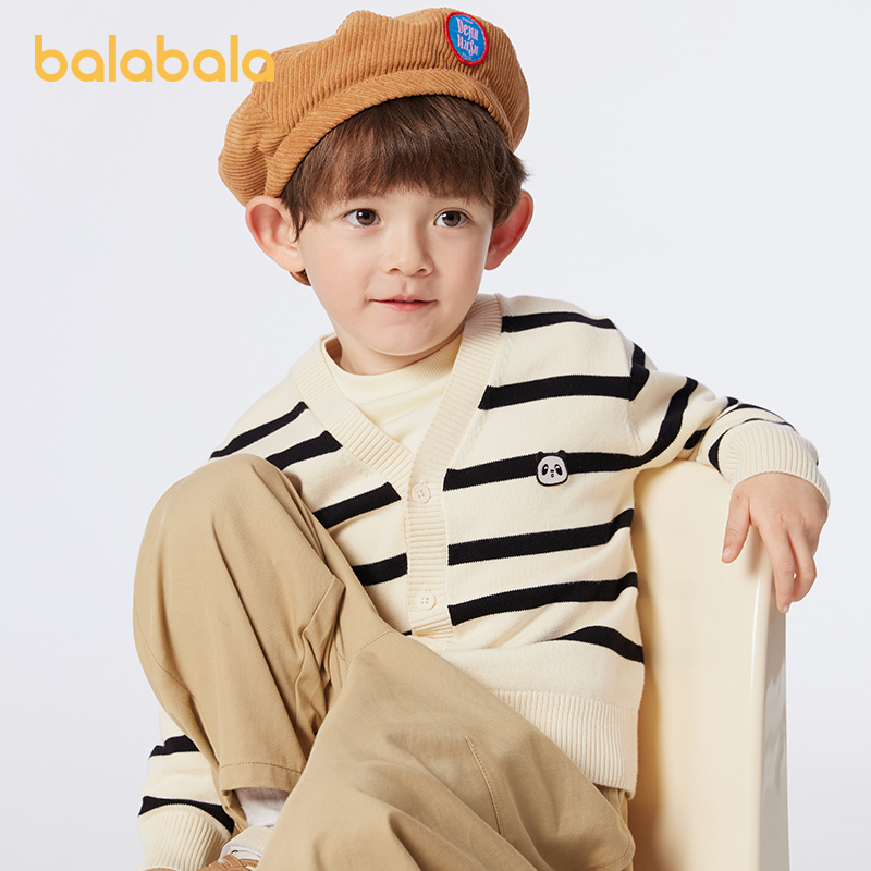 童装 巴拉巴拉男童毛衣小童宝宝条纹针织衫 新款 2025秋季 潮 儿童开衫