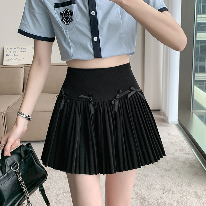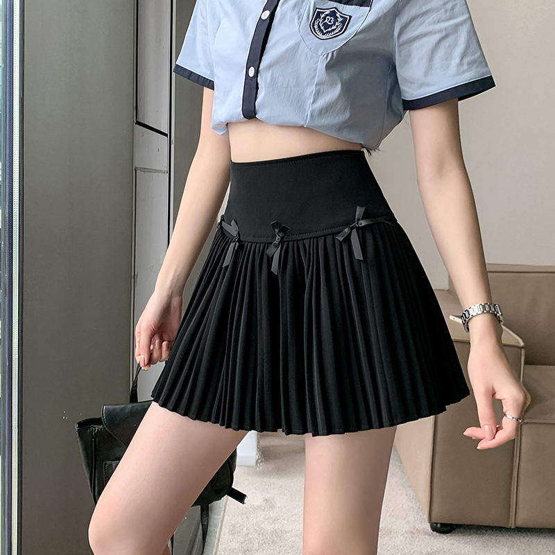 蝴蝶结半身裙女2024新款 高腰百褶裙春夏短裙a字裙显瘦伞裙裙子潮