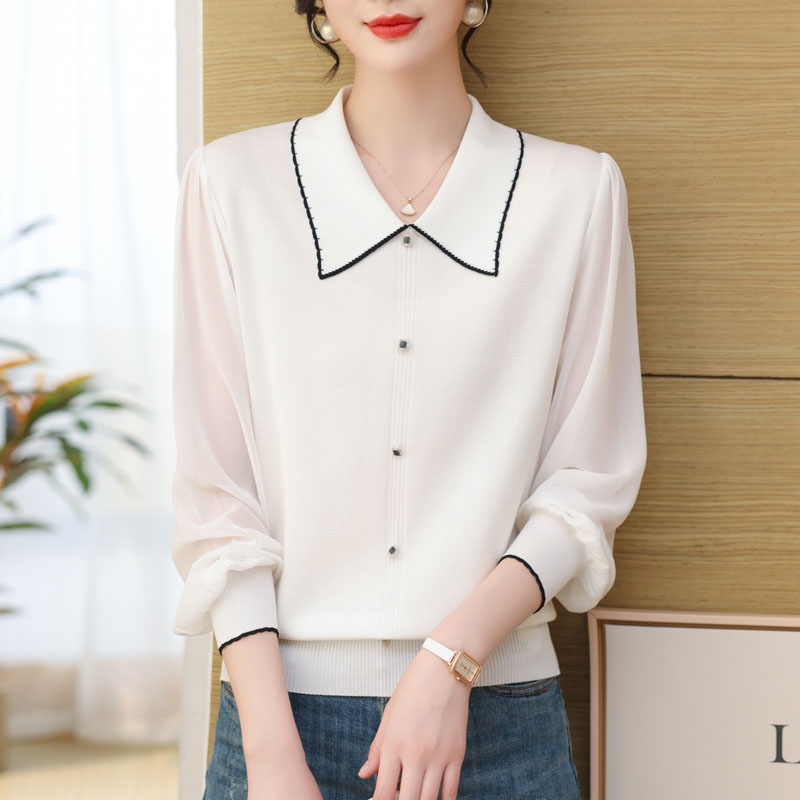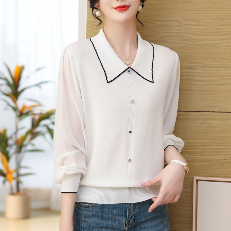 妈妈春装 T恤中老年春夏气质小衫 纱袖 中年女洋气短款 衬衫 2024新款