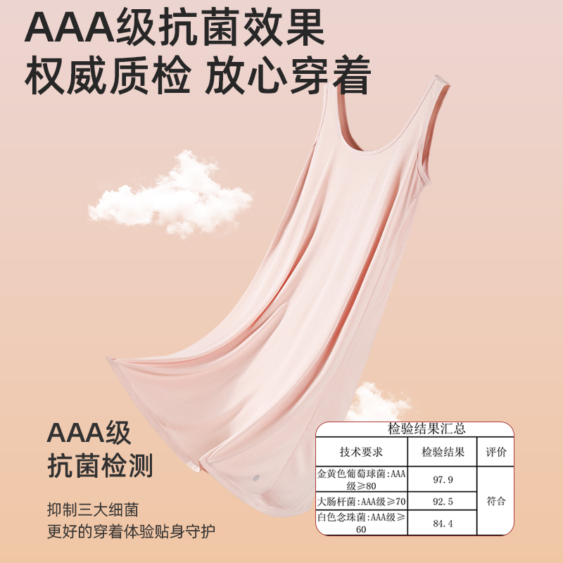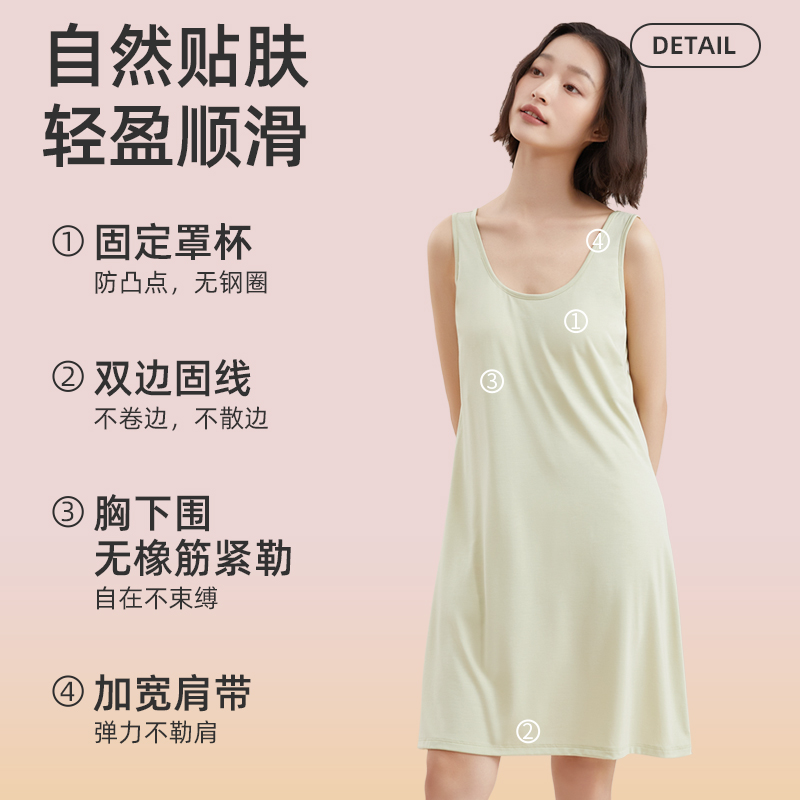 蕉内棉棉300Sleep女款 女士吊带睡裙 睡衣带杯带胸垫莫代尔冰丝短袖