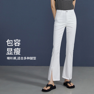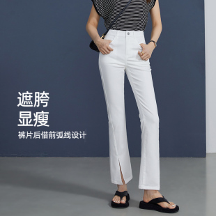 早秋薄款 女裤 女开叉喇叭裤 修身 清仓 子断码 逸阳白色三防微喇牛仔裤