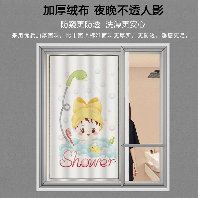 卫生间窗帘2025新款 免打孔防水防霉小窗户遮光浴帘宿舍厕所遮挡帘