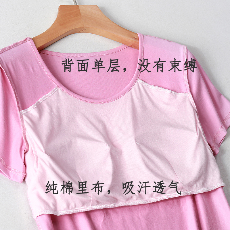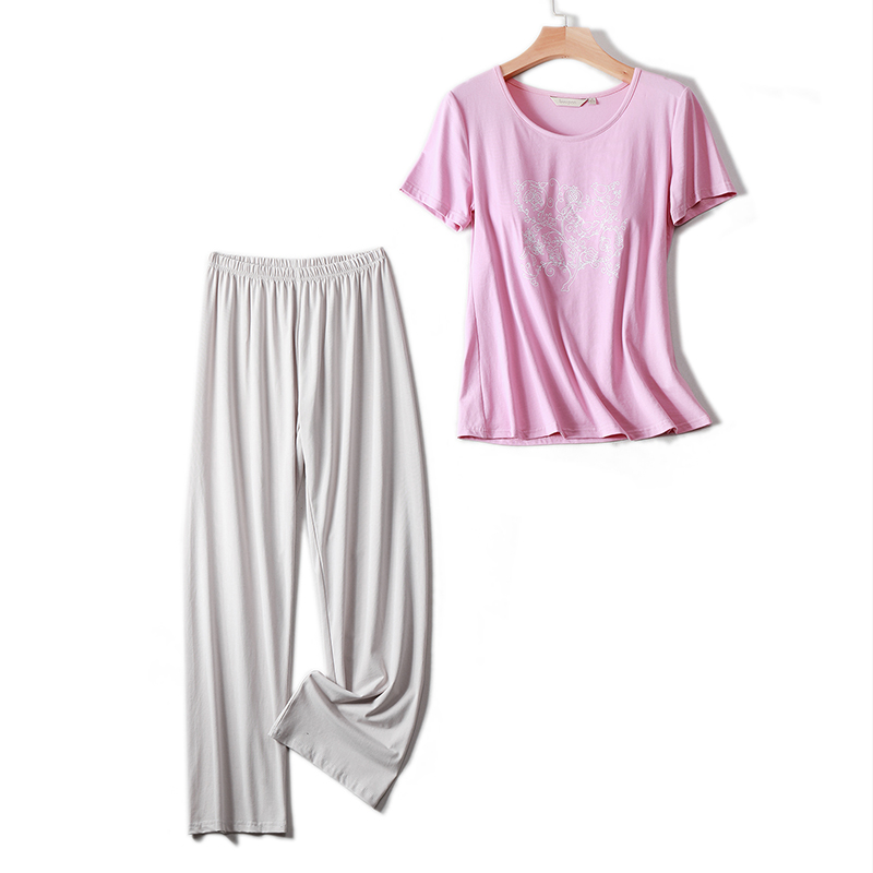 棉七分裤 女士夏季 印花免穿文胸家居服 睡衣套装 带胸垫短袖