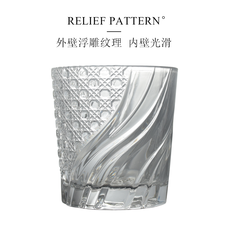 复古浮雕冰川玻璃杯水杯子家用待客喝水套装 高级感轻奢红啤酒茶杯