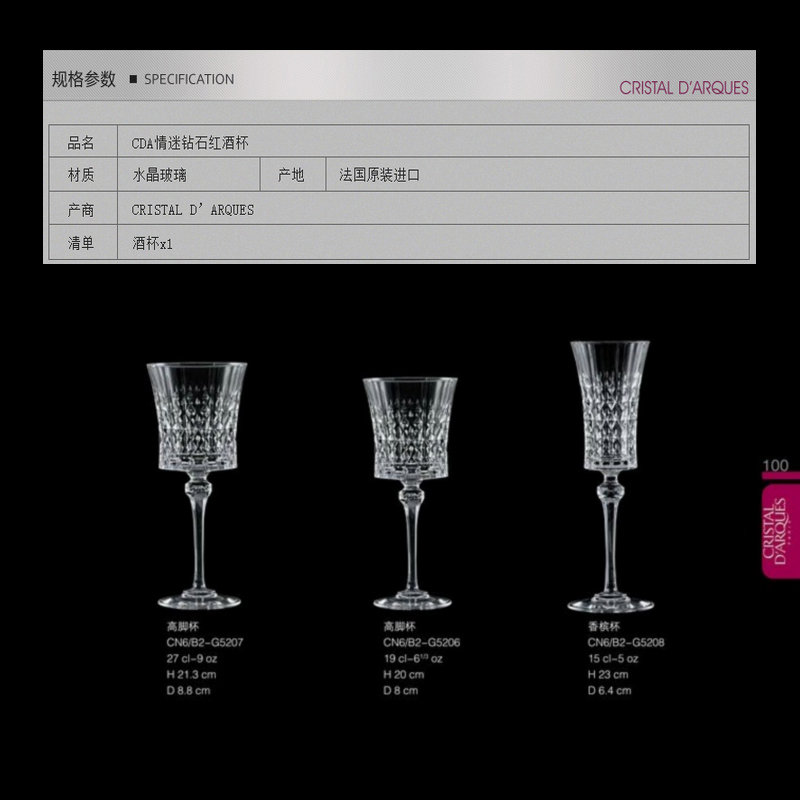 法国原装 家用几何刻花杯6只 进口情迷水晶玻璃红酒杯宴会菱形个性