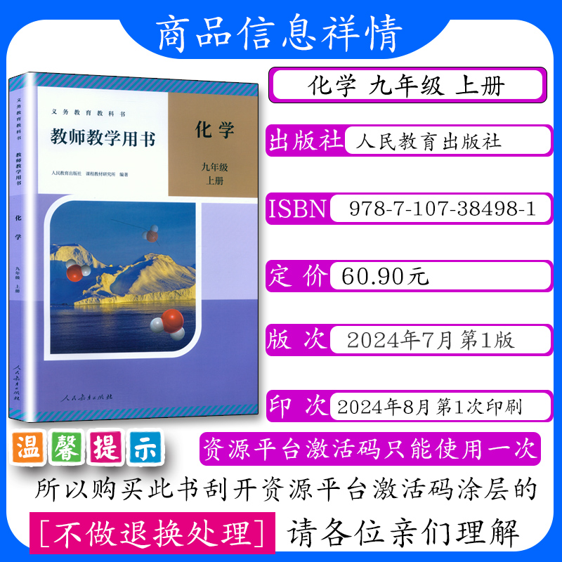 新版 教师教学用书初中三年级上学期化学九年级上册教材教科书配套教学参考指导教案老师用书 2025秋用教师用书化学9年级上册人教版