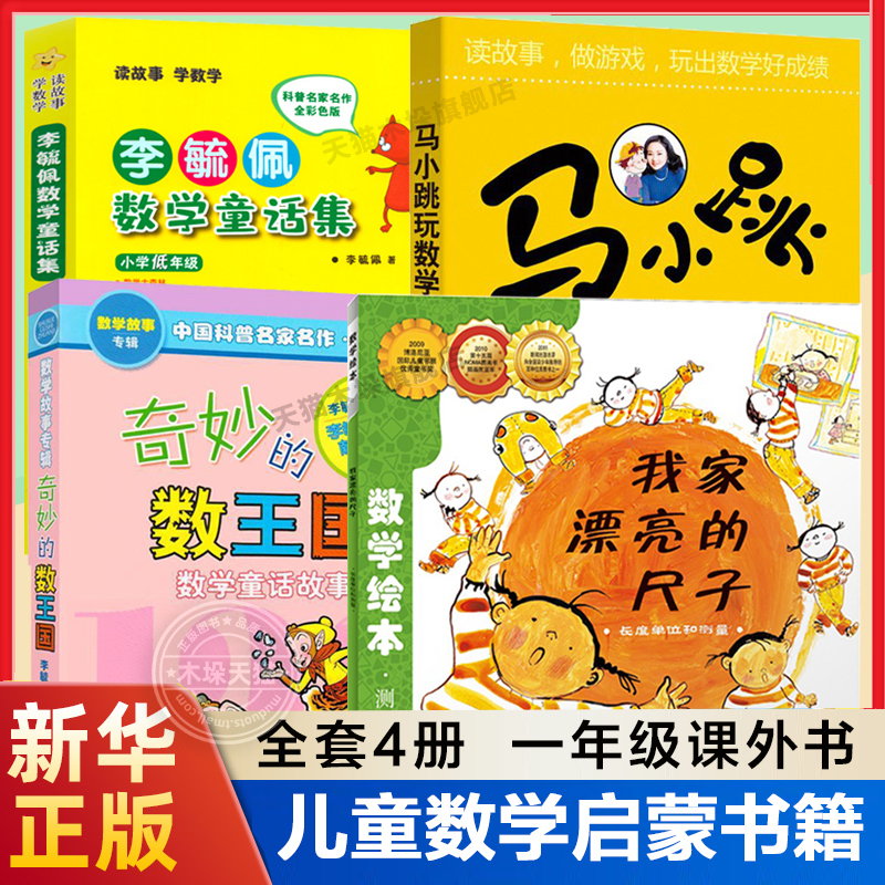 一二年级小学生数学启蒙思维训练辅导书 数王国李毓佩数学童话集小学低年级马小跳玩数学12年级 全套4册二年级我家漂亮 尺子奇妙