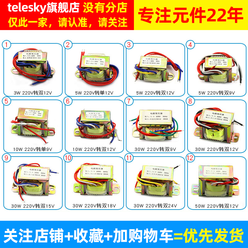 50W30W10W5W 220V转单双9V 电源变压器EI66 15V 12V 24V
