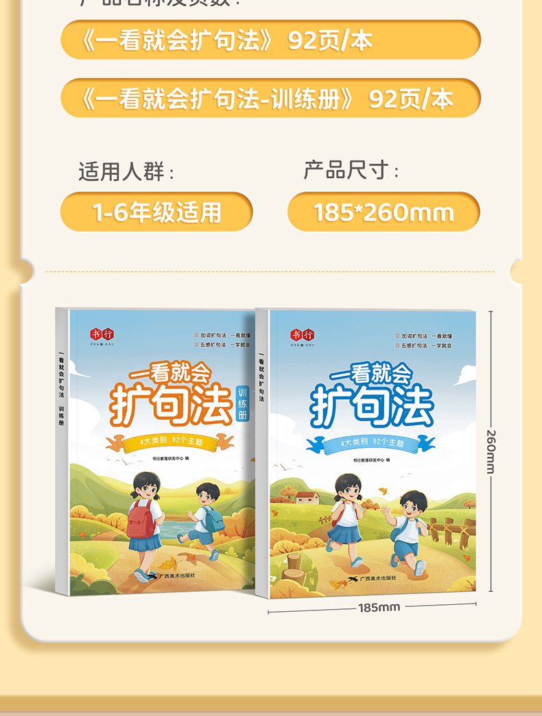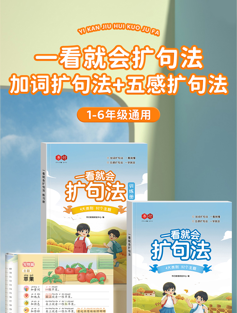 2本加词扩句法+五感扩句法 一看就会扩句法加词法修辞法小学生五感法写作文一二三四五六年级上下册小学通用同步作文套装 书行