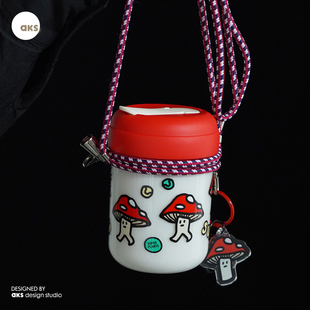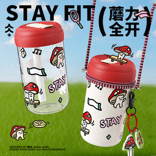 aks夏天水杯女生蘑菇新款 高颜值可爱tritan便携吸管杯办公室杯子