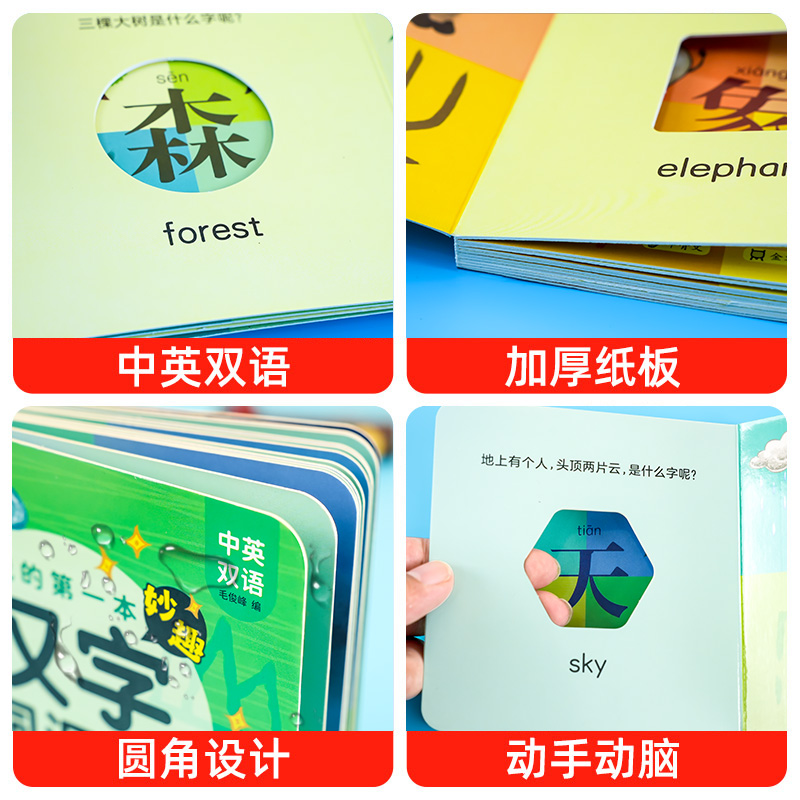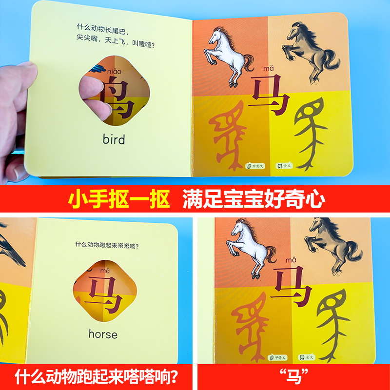 3岁宝宝撕不烂认知绘本儿童启蒙早教触摸书 我 第一本妙趣汉字洞洞书瓜和果人家天地马和鸟幼儿识字益智翻翻书中英双语0到1