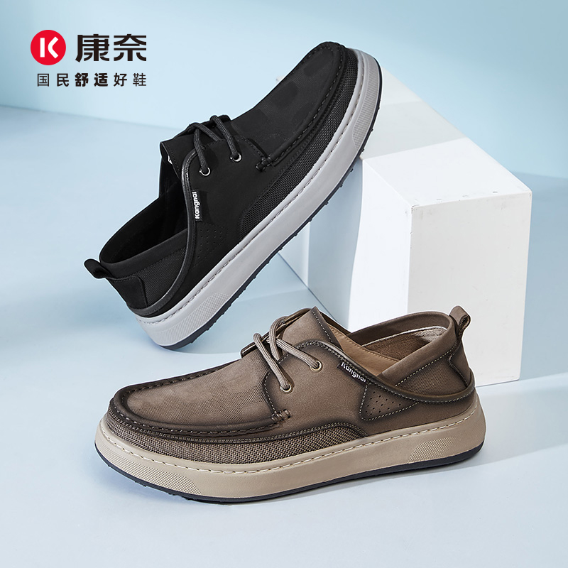 休闲皮鞋 新款 男士 软底一脚蹬真皮鞋 红蜻蜓男鞋 子男中年爸爸鞋 秋季