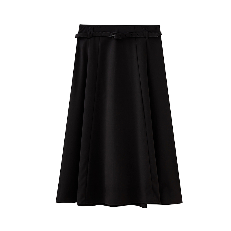 新款 伞裙子极简高智精英风2025夏季 西装 水云间黑色半身裙女中长款