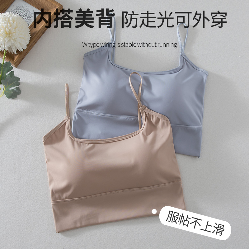 外穿吊带背心女带胸垫美背冰丝无痕内衣春夏新款 打底内搭抹胸上衣