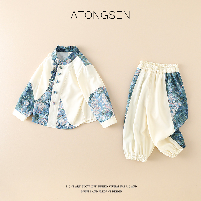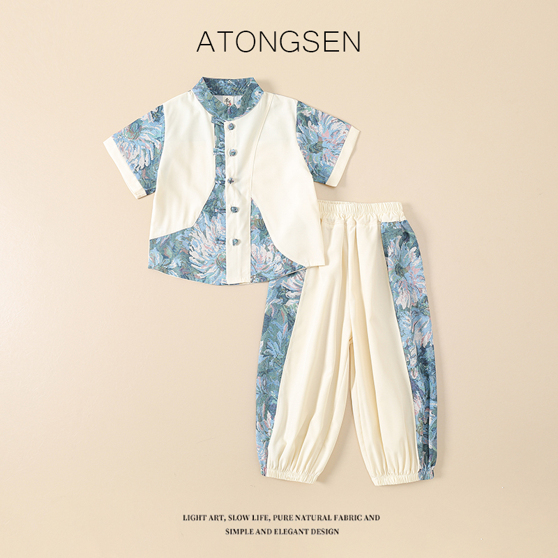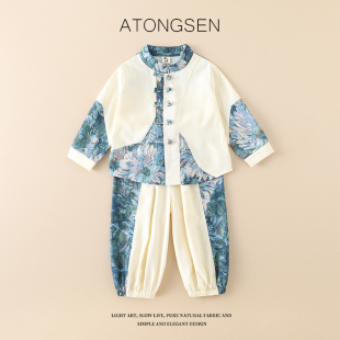 春秋古风套装 汉服男童春装 新中式 儿童中国风古装 日常可穿2025新款