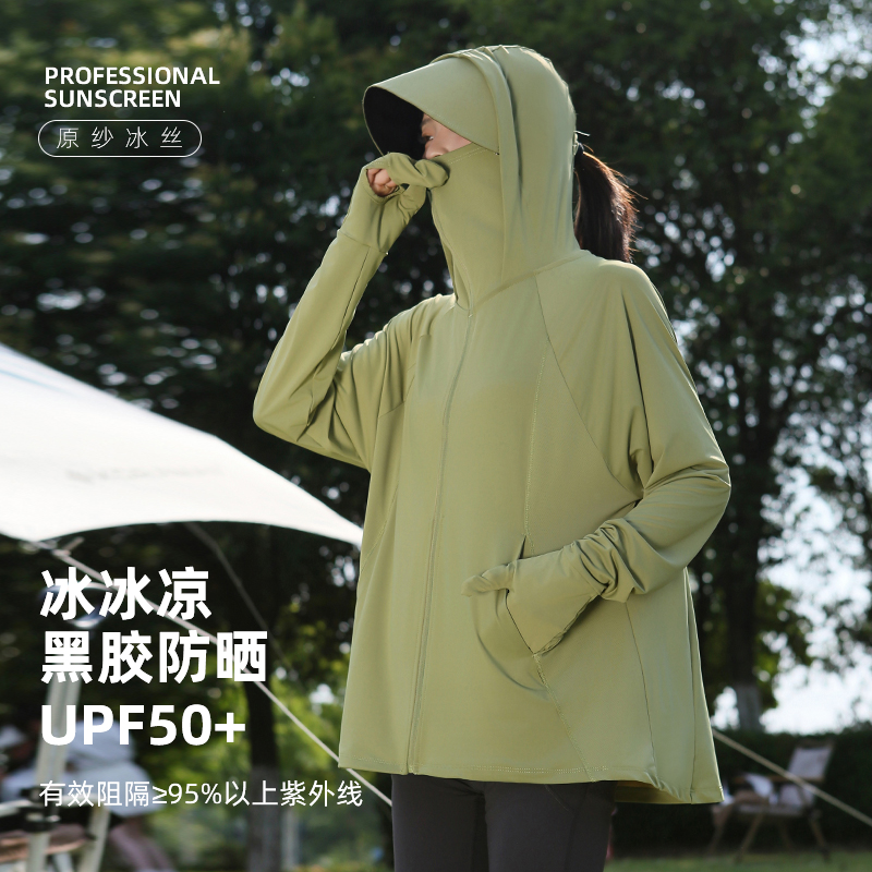 防晒服 防紫外线冰丝凉感宽松时尚 全包裹护手防晒衣2025新款 女夏季