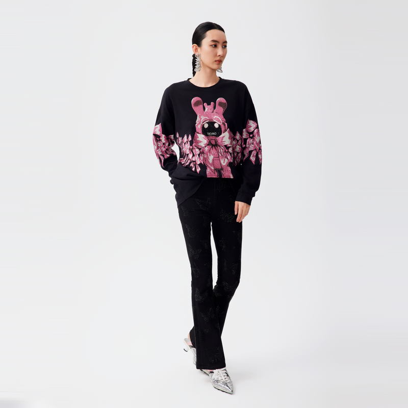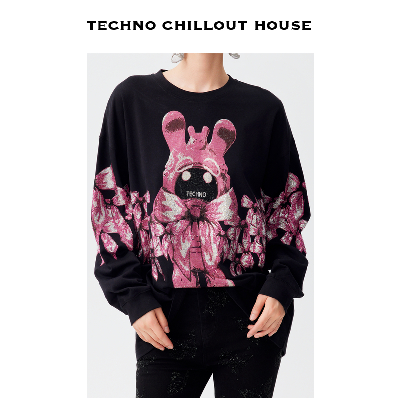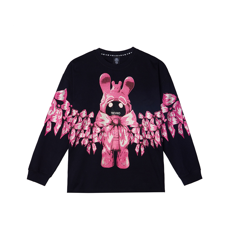TCH时尚 上衣春秋T72C116095 潮牌烫钻粉色小熊休闲卫衣长袖