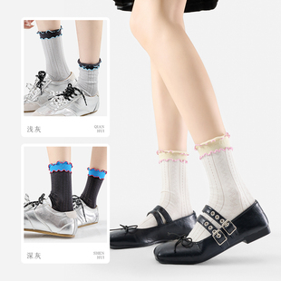 袜子女中筒袜纯棉春秋咖色美拉德堆堆袜秋冬搭配小皮鞋 长袜 勃肯鞋