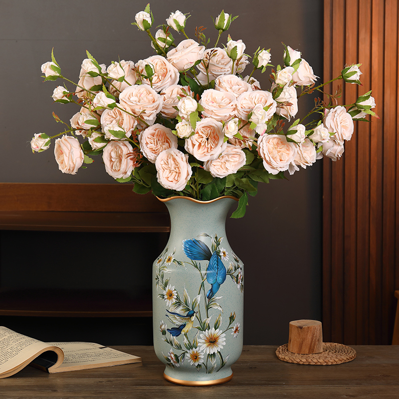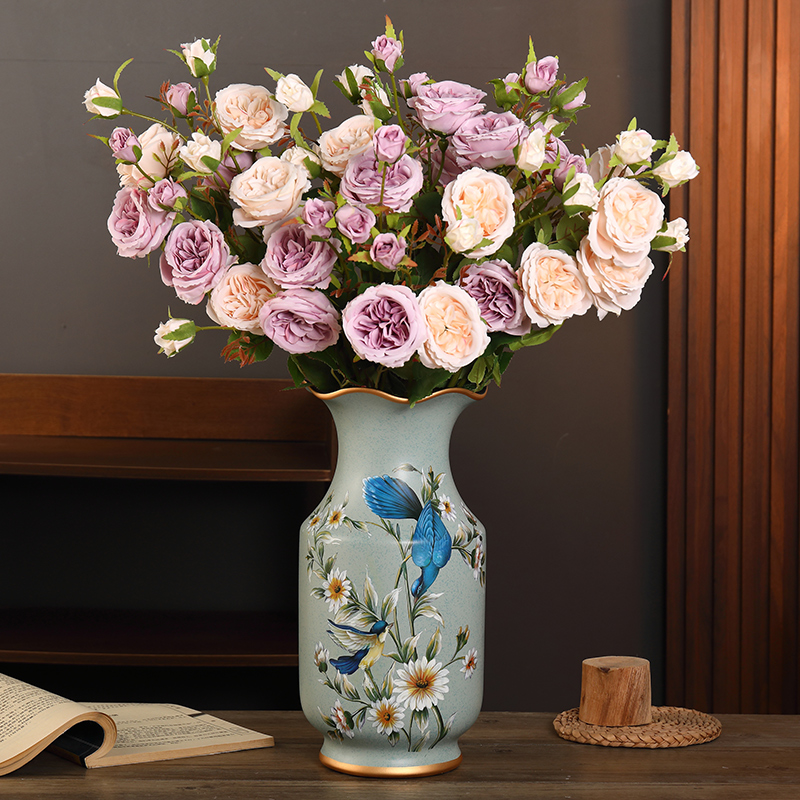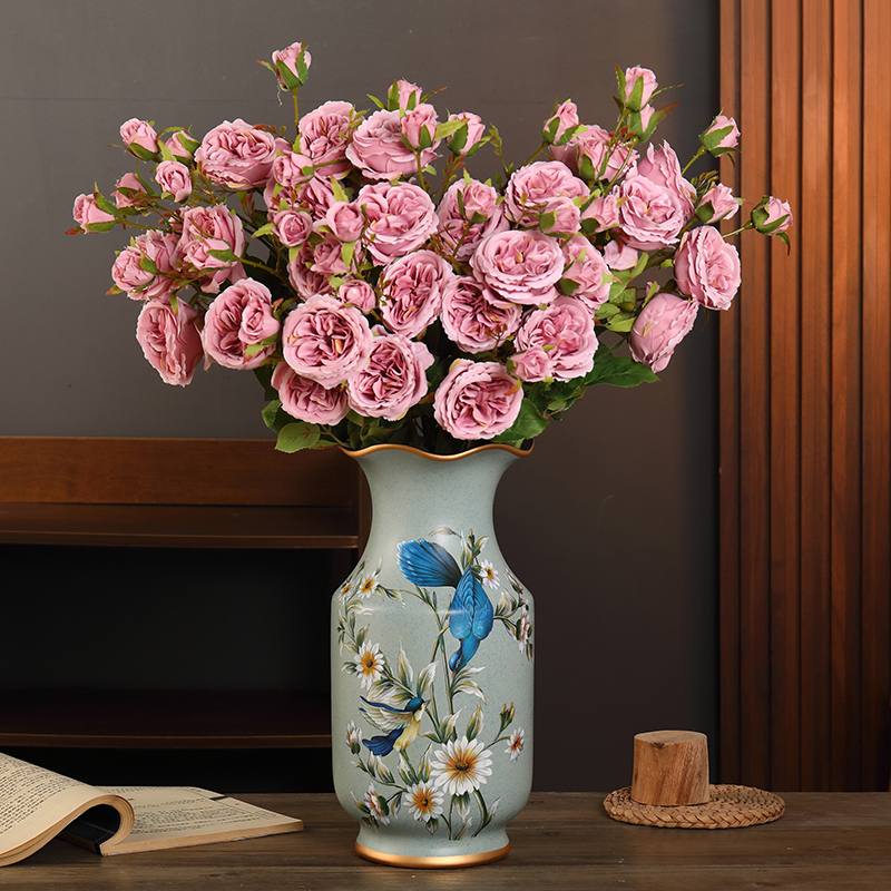 设 饰花仿真假花工艺品装 美式 复古陶瓷花瓶摆件创意客厅插花家居装