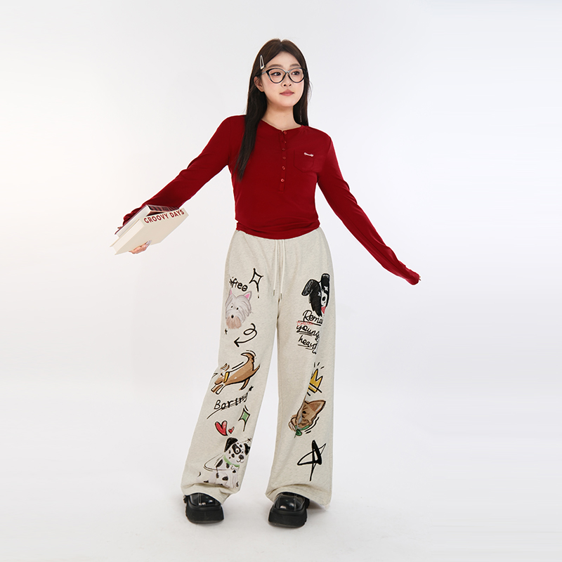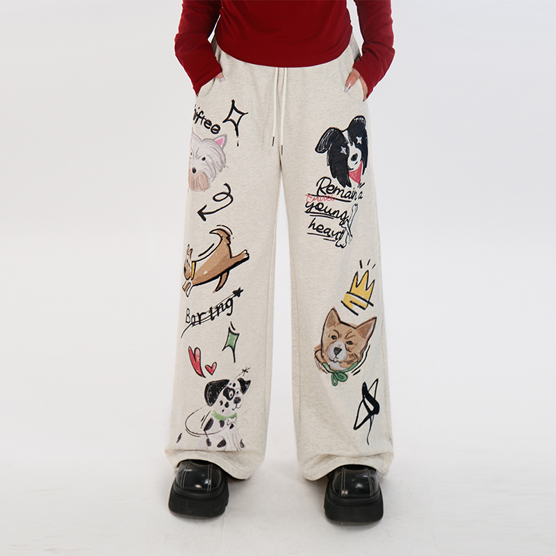 涂鸦印花显瘦亲肤休闲卫裤 UNIFREEPLUS宽松阔腿裤 明星同款