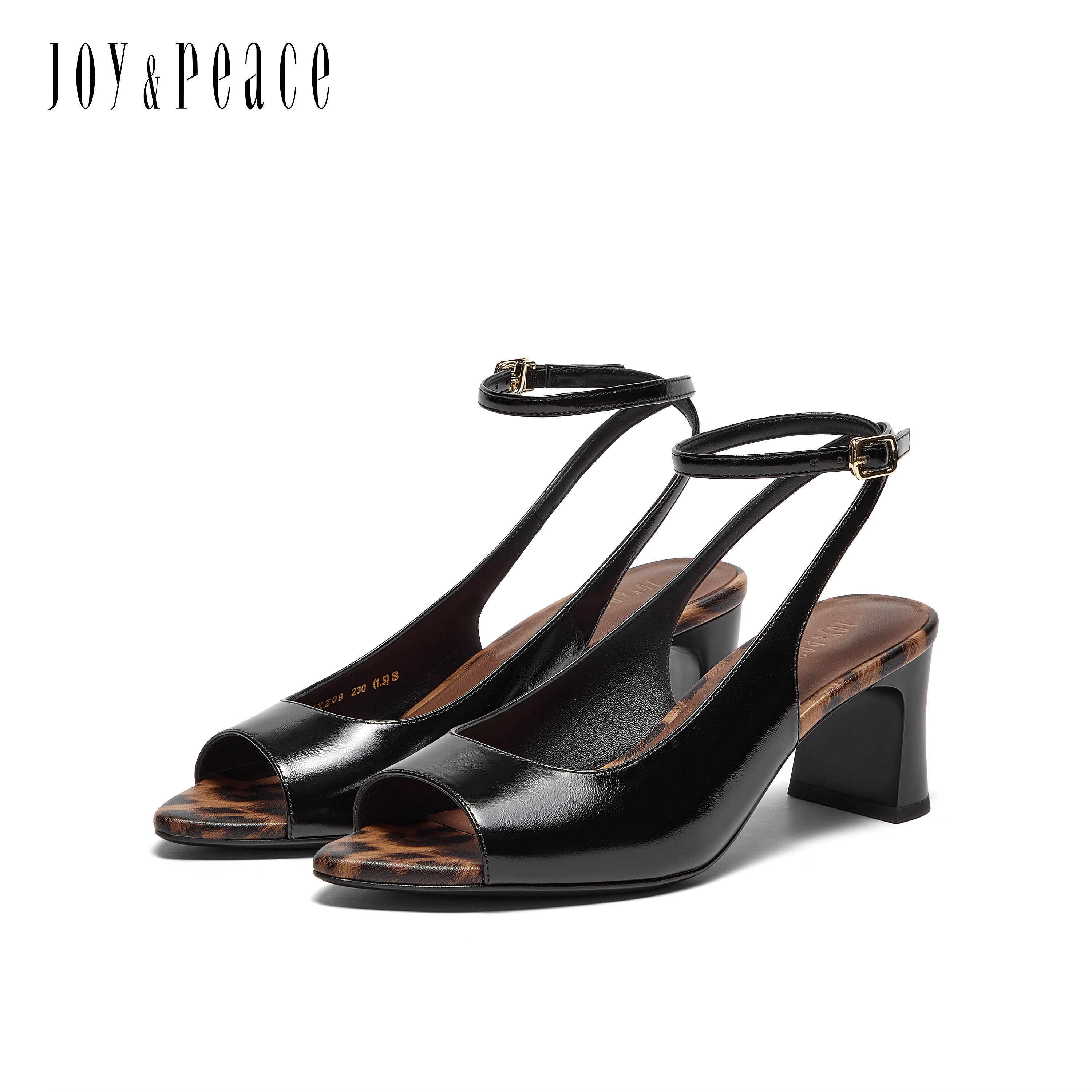 尖头鱼嘴凉鞋 真美诗2025夏季 粗跟单鞋 牛皮豹纹法式 女YXZ09BL5 新款