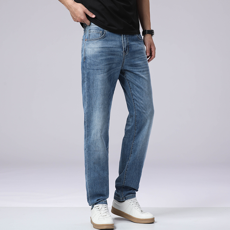 弹力桑蚕丝高档薄款 博世堡秋季 亚麻百搭宽松直筒长裤 牛仔裤 男 男士