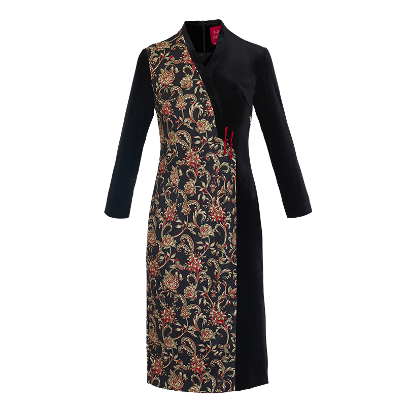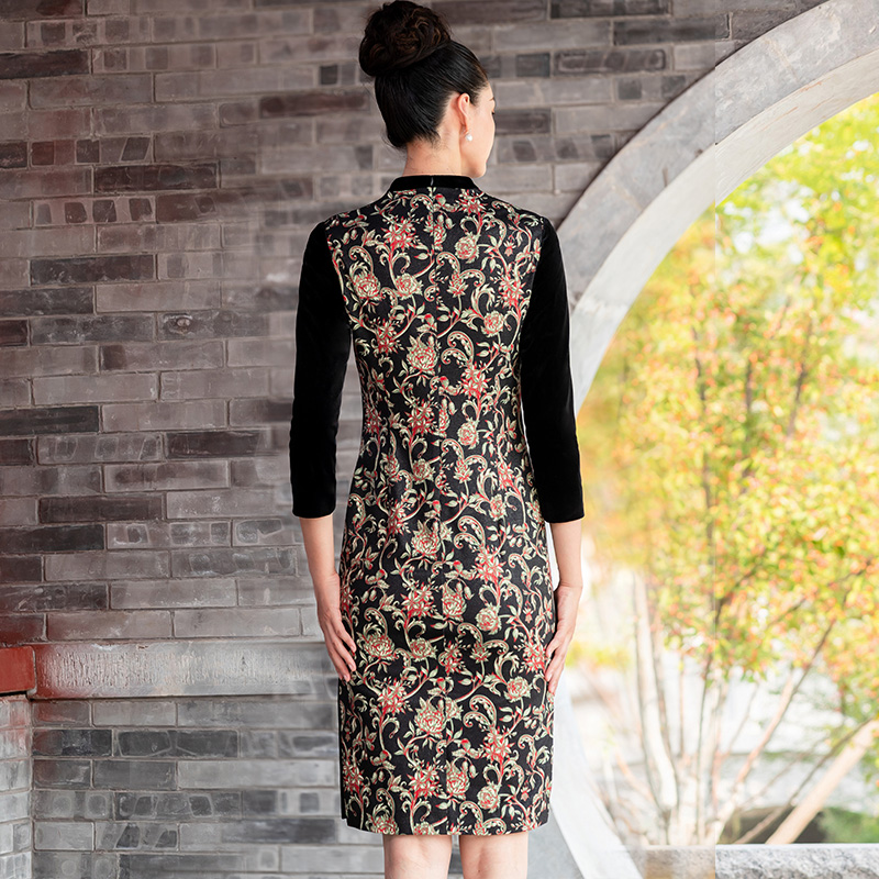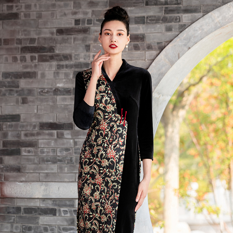 新中式 新款 改良设计蝴蝶印花气质旗袍裙 爱依服连衣裙2025秋季 IEF