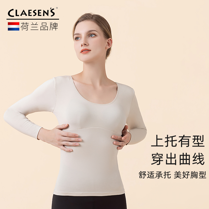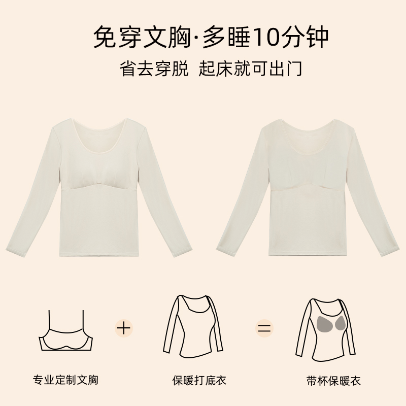 保暖内衣女带胸垫一体加绒加厚发热贴身打底衫 免穿文胸秋衣上衣冬