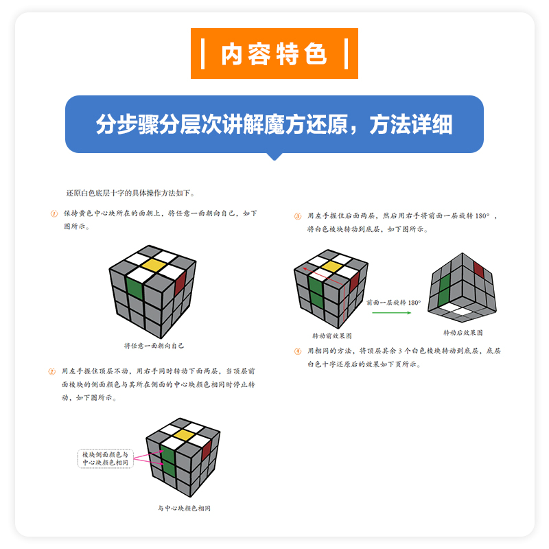 三阶魔方复原方法教程技巧大全书籍 魔方攻略 青少年中小学生幼儿自学魔方教程教材 魔方入门教程 零基础玩转魔方
