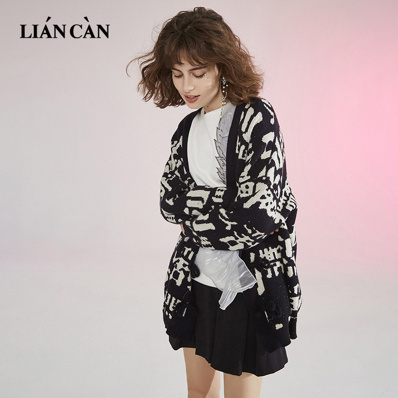 针织开衫 直播设计师品牌宽松风黑色中长款 71AW332003 莲灿