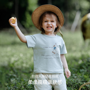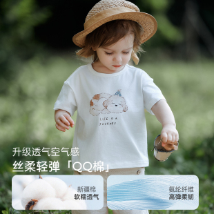 圆领上衣打底衫 Oak 弹力棉T恤男童女童短袖 宝宝童装 Family夏季