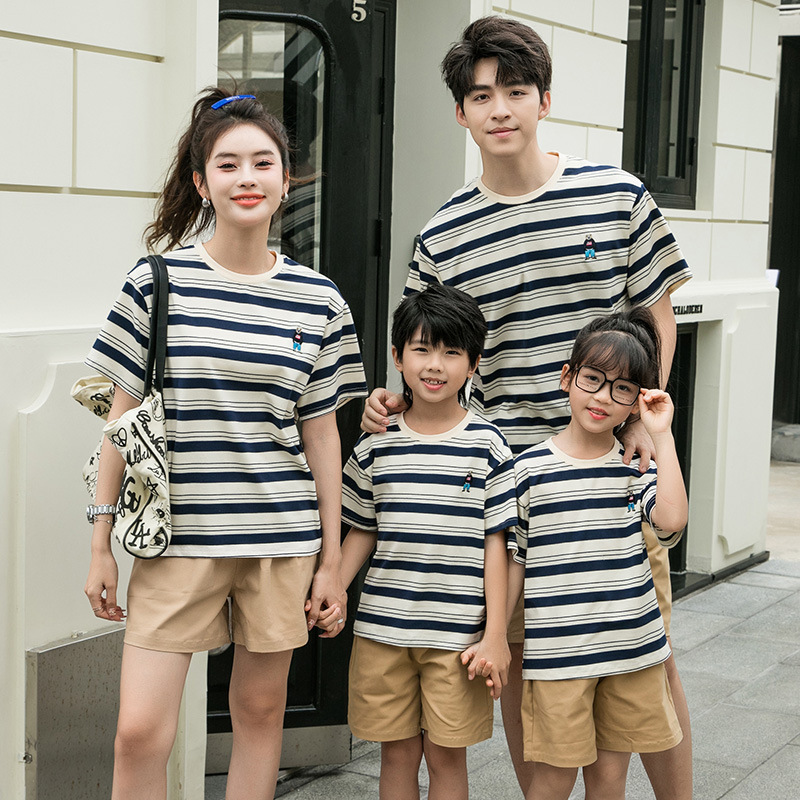 亲子装 夏季 一家四口纯棉短袖 母女装 爆款 情侣家庭全家套装 2025新款