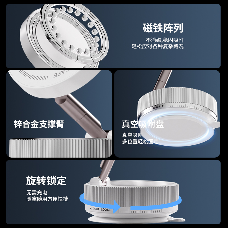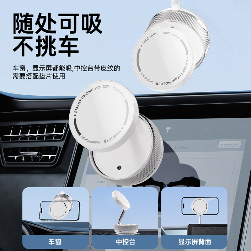 车载手机支架2025新款 真空吸附汽车用导航手机架伸缩折叠磁吸固定