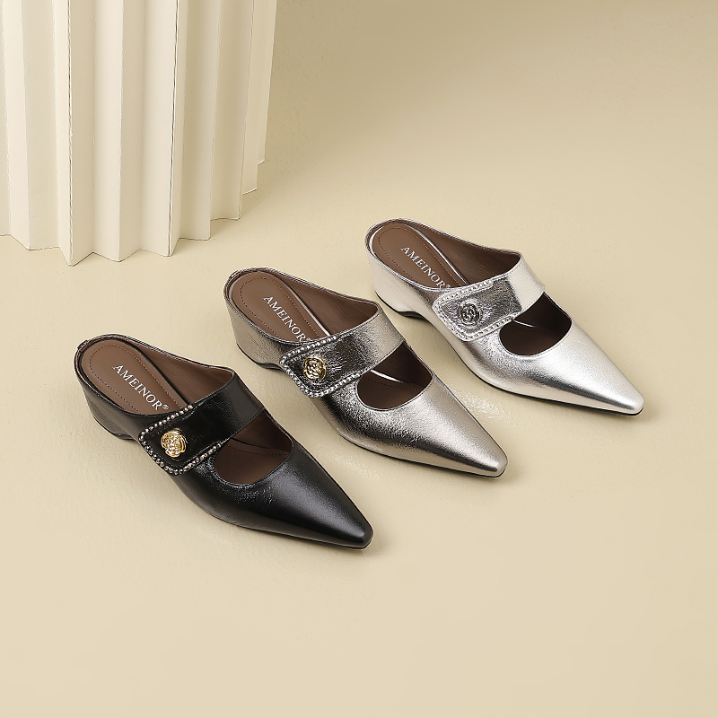 包头拖真皮内增高女士半拖鞋 气质尖头镂空舒适凉拖鞋 新款 2025夏季