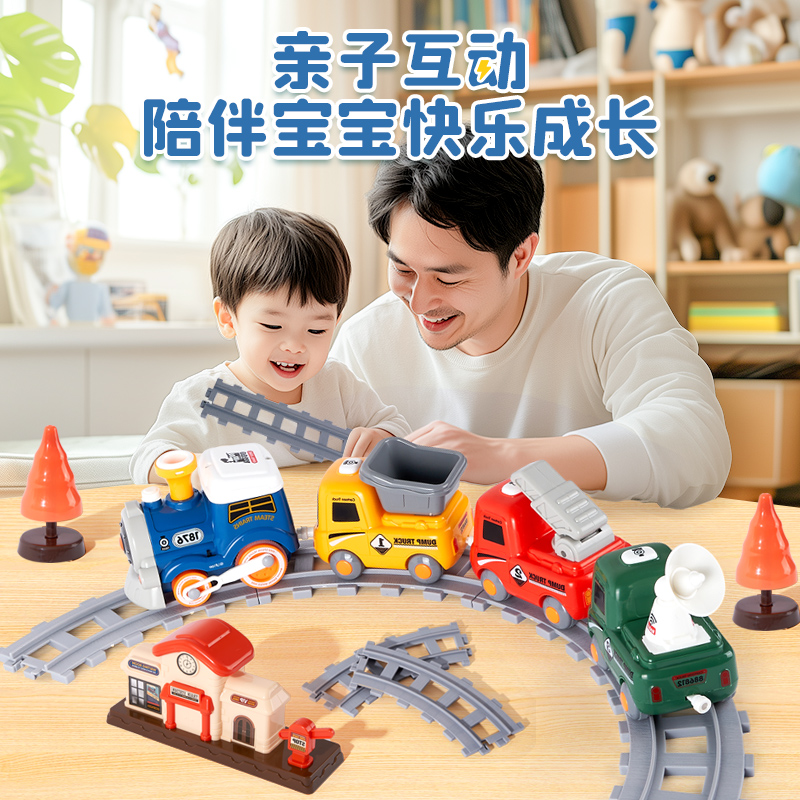 电动蒸汽小火车玩具轨道车仿真儿童男孩益智卡通车厢模拟模型交通