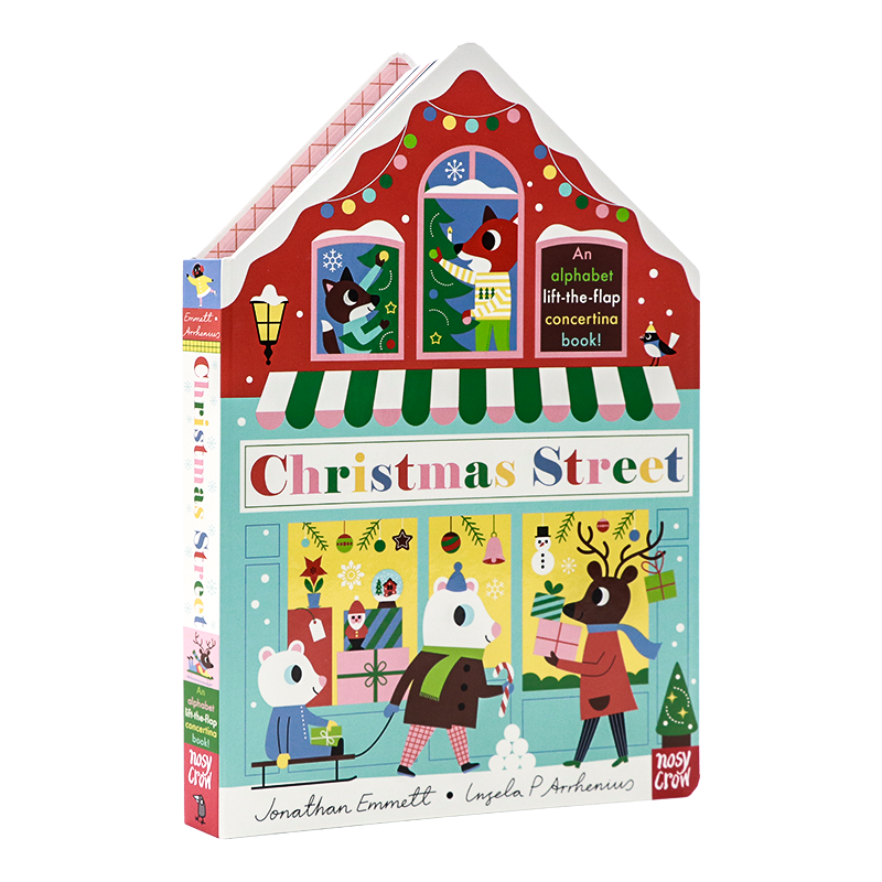 岁婴幼儿圣诞主题互动书 英文原版 圣诞大街 Jonathan Street Ingela Christmas Arrhenius字母启蒙 纸板翻翻书 Emmett