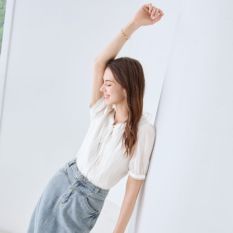圆领盘扣衬衣早秋女装 白色天丝新中式 2025新款 女秋季 上衣 国风衬衫