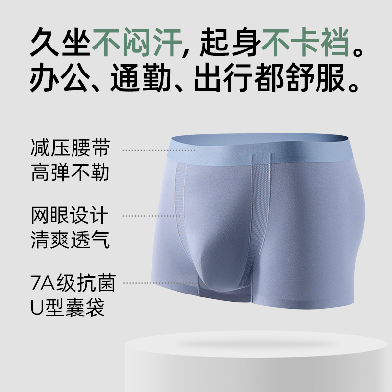 无痕莫代尔凉感抗菌裆运动平角短裤 七色纺冰丝内裤 薄款 夏季 头 男士