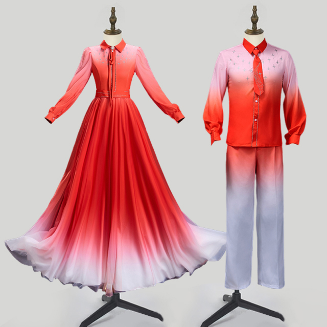 新款 成人大合唱团演出服女长裙中学生红歌比赛诗歌朗诵舞台表演服