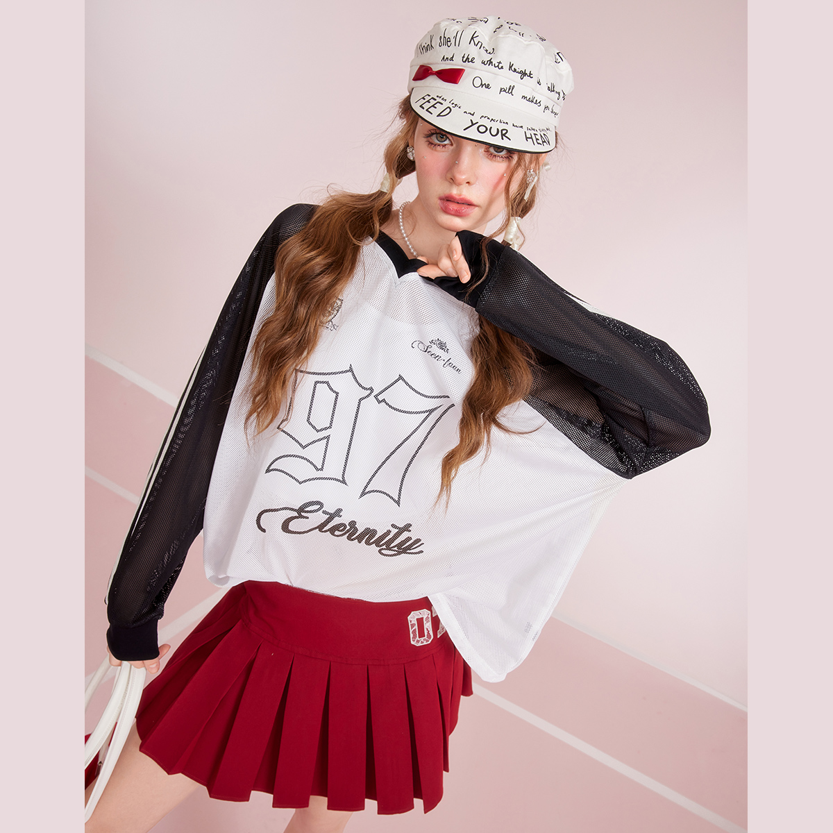 短袖 SEENFAAN盛放2025年夏季 V领插肩袖 宽松显瘦美式 T恤女透气 新款