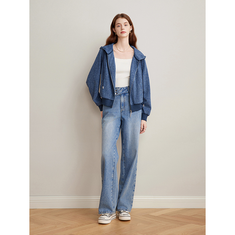 松紧腰阔腿裤 柔软舒适休闲连帽外套 2025春新款 Goodland美地女装