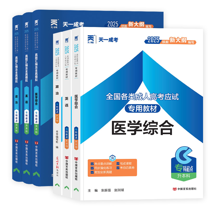 天一2025年医学综合成人高考专升本教材试卷复习资料全套书籍政治英语历年真题模拟临床护理类辅导高升大专成人高考专升本考试题库
