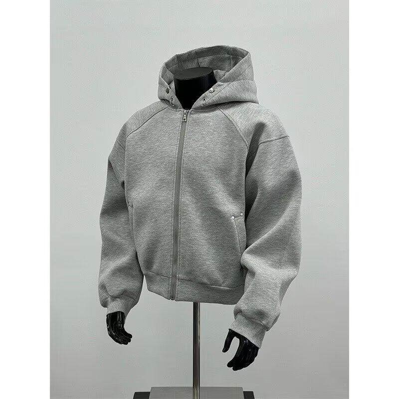 卫衣男款 连帽衫 春秋季 廓形外套cleanfit短款 美式 500g重磅灰色开衫