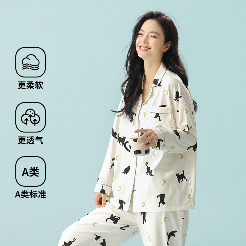 宽松7A抗菌可外穿高级感家居服套装 七色纺纯棉睡衣女士春秋款 开衫