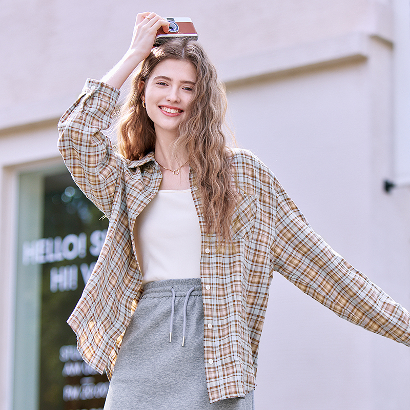 休闲格子女士衬衫 唐狮2025早秋新款 女百搭时尚 衬衫 外套初秋d2 长袖
